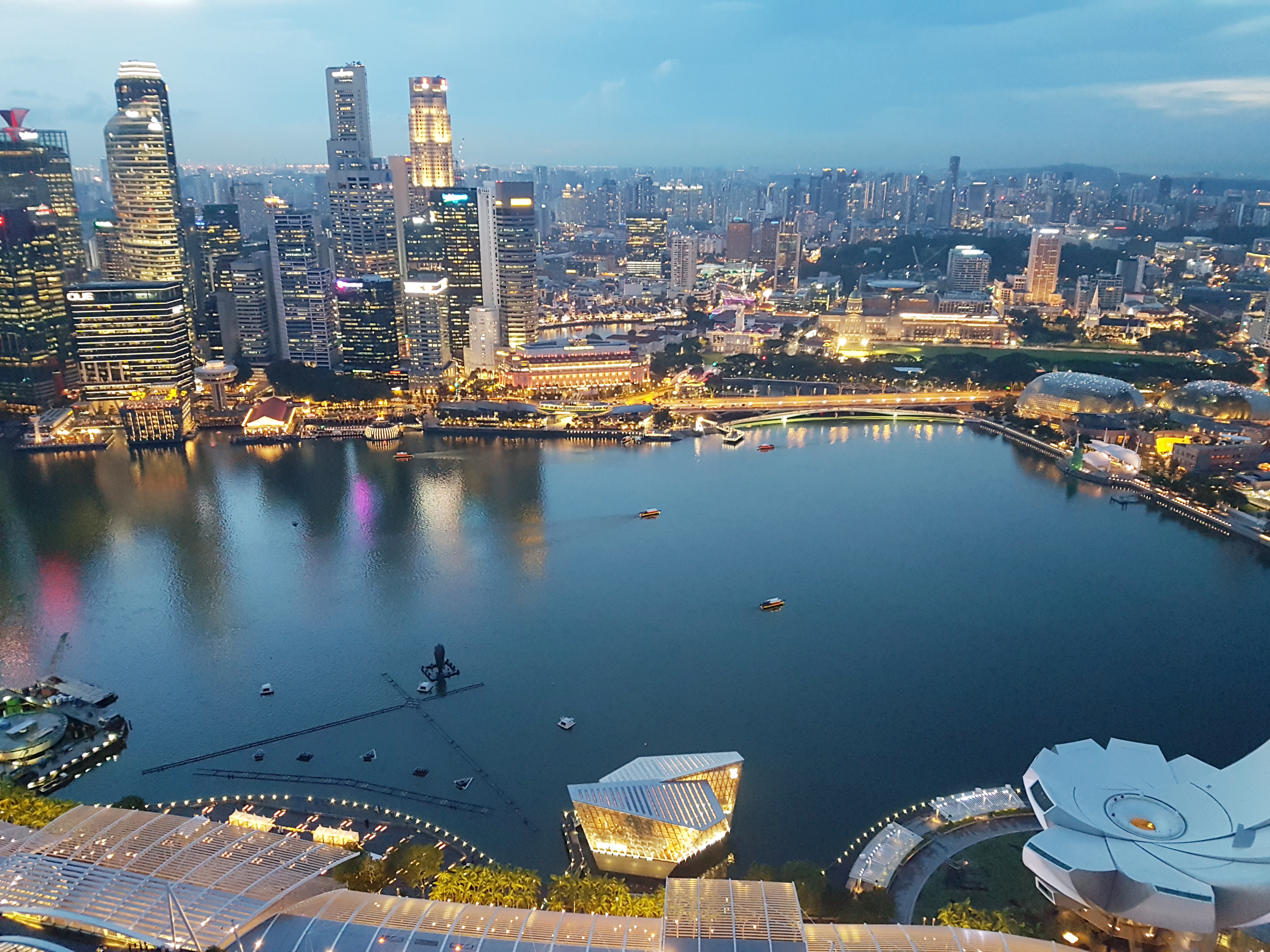 So I accepted Jeff’s advice and I am z. b. Going into the architectural marvel “Marina Bay Sands” (hotel) and instead of a ticket (23 Singapore dollars) to enjoy the platform above and enjoy the view not at the Ticket Center, but in the Celavie bar below a drink voucher for 20 Singapore dollars and enjoyed a cocktail next to the great view.